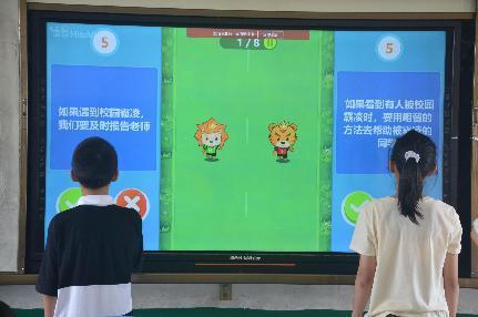 (通讯员 罗晗菁)7月21日,湖北第二师范学院四叶草青年志愿服务队第二小组为同学们展开了一堂对校园霸凌坚决说不的课。志愿者们用知识竞答、情景演练、视频教育等多种形式生动的展示了校园霸凌的表现,危害及应对措施,同学们沉浸在灵活课堂汲取知识的同时,志愿者们也通过自己的巧思让同学们牢记不成为霸凌者的同时做一个勇敢正义的人。