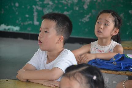 (图为志愿者用知识竞赛的形式激发儿童对知识点学习的热情)