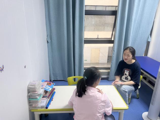 (图为特殊教育老师为大学生志愿者讲述孤独症儿童的艰辛 )