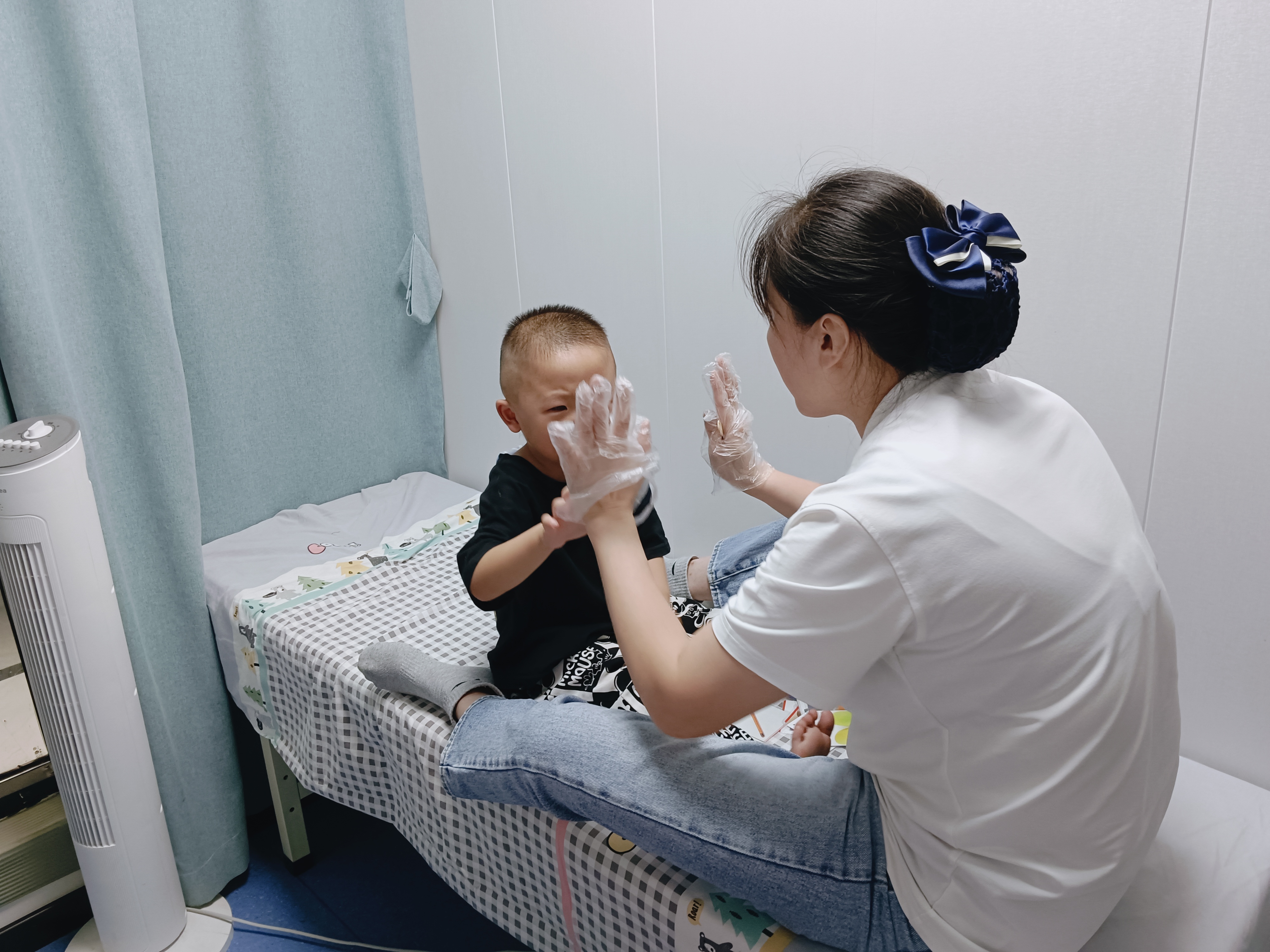 (图为老师为小朋友做康复 )