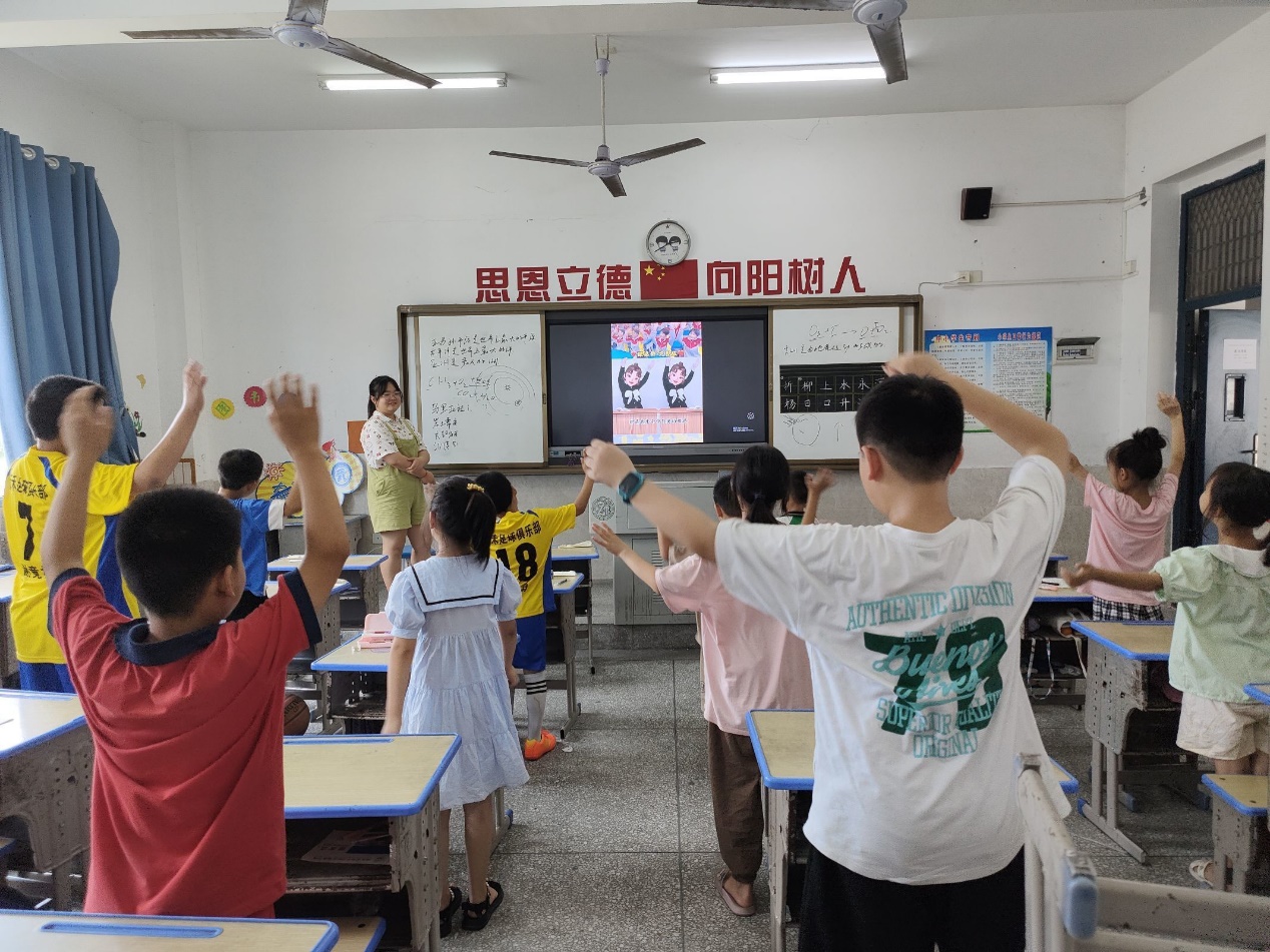 (通讯员 丁学莘)湖北第二师范学院四叶草青年志愿服务队于7月22日在思源实验学校校园为学生开展了一场别开生面的活动,他们带领学生们跳课前手势舞,旨在通过舞蹈的方式,促进学生们的身心健康,增添校园生活的乐趣。随着现代社会的快节奏和学业压力的增加,学生们往往缺乏锻炼和释放压力的机会。为了帮助他们更好地调节情绪、增强体质,思源实验学校的志愿者们创新性地引入了手势舞这一形式,既能锻炼身体,又能培养协调性和团队合作意识。