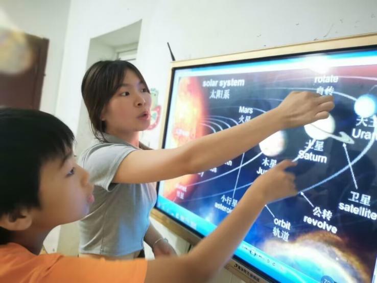 (图为四叶草青年志愿服务队志愿者向学生讲解海王星的相关知识)