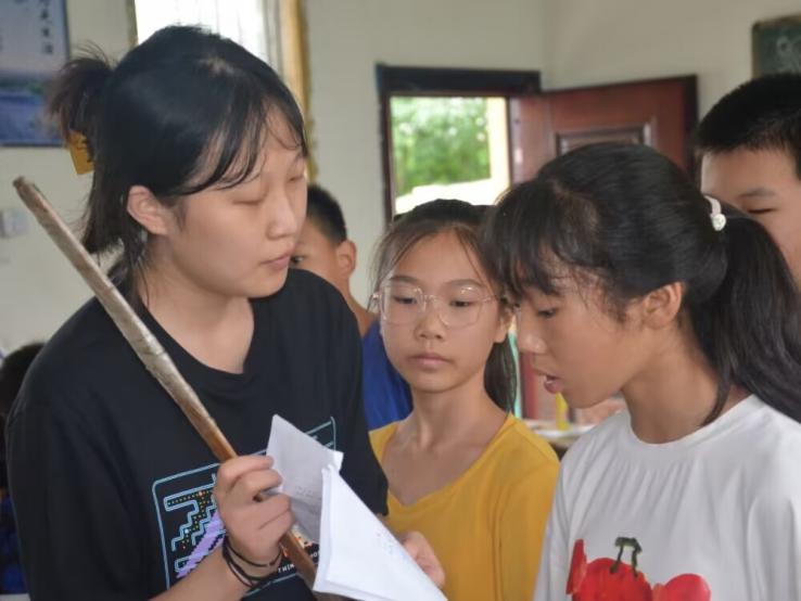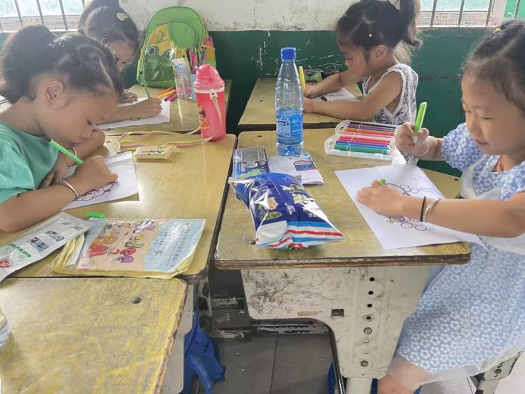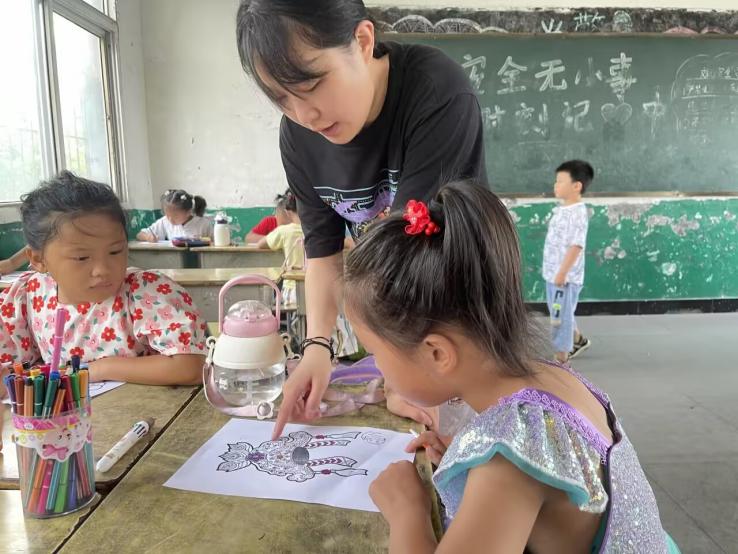 (图为四叶草青年志愿服务队志愿者指导学生绘画)