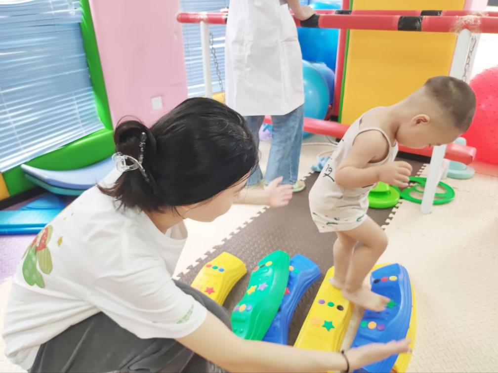 (图为志愿者在陪护儿童玩耍)