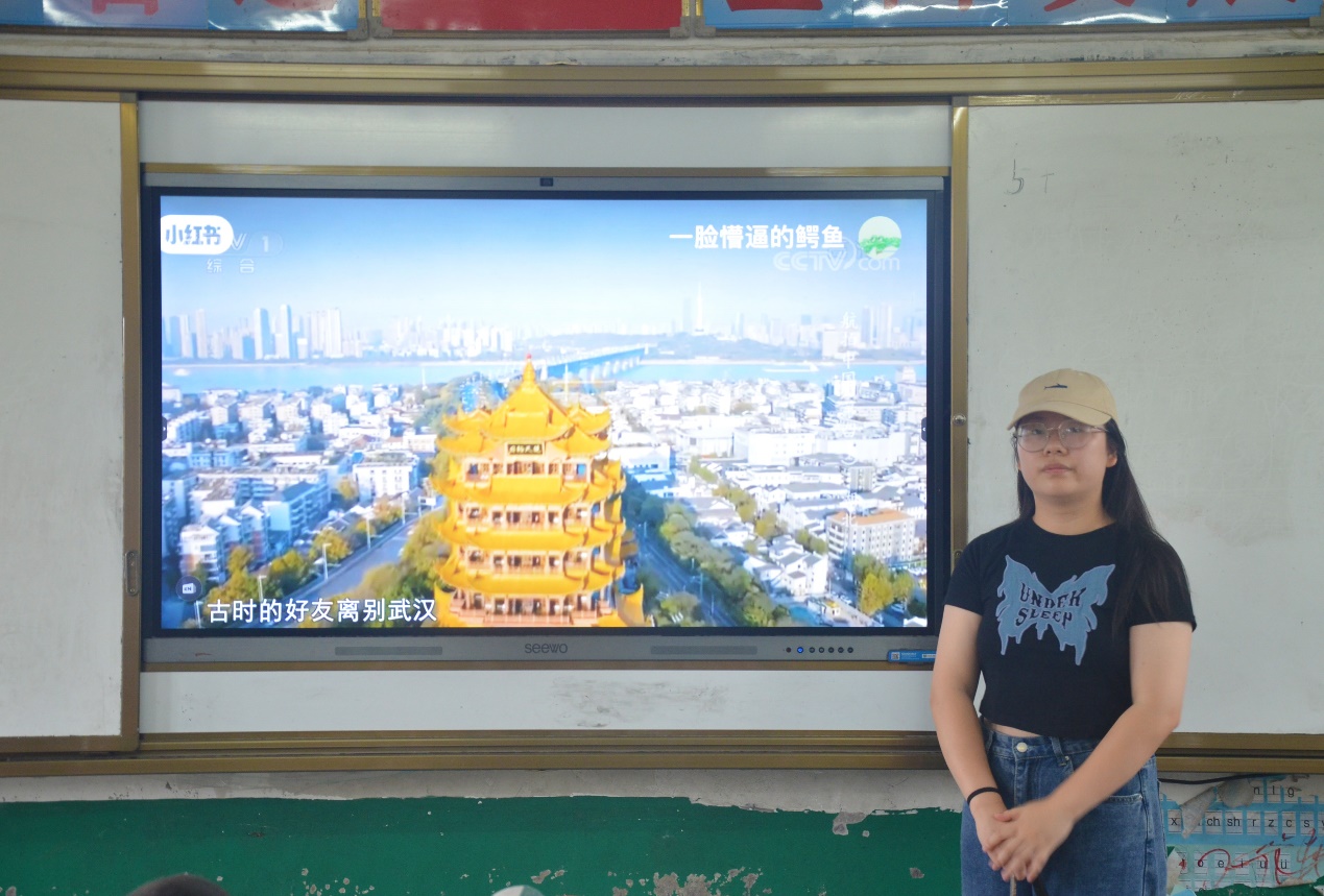 (图为志愿者正在为孩子们介绍自己的家乡——武汉)