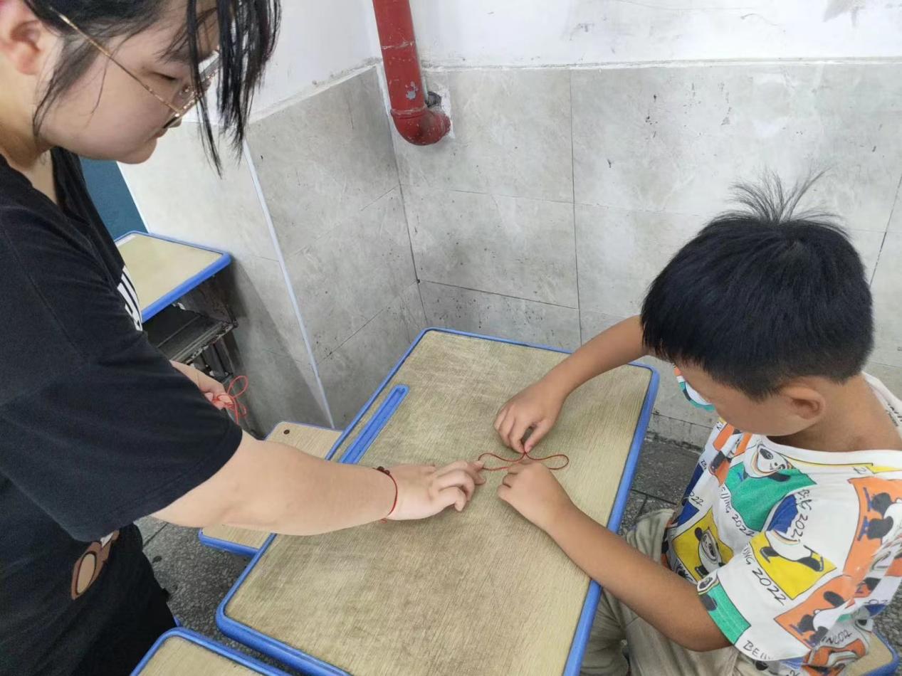(通讯员 廖家仪)手编中国结,浓浓爱国情。7月14日,四叶草青年志愿服务队第四分队在监利市新沟镇浩宇制衣进行暑期“三下乡”社会实践活动。为了增强大学生的社会责任感和培养小学生对传统文化的兴趣,今天,湖北第二师范学院四叶草青年志愿服务队第四分队志愿者带领学生学习了制作中国结。