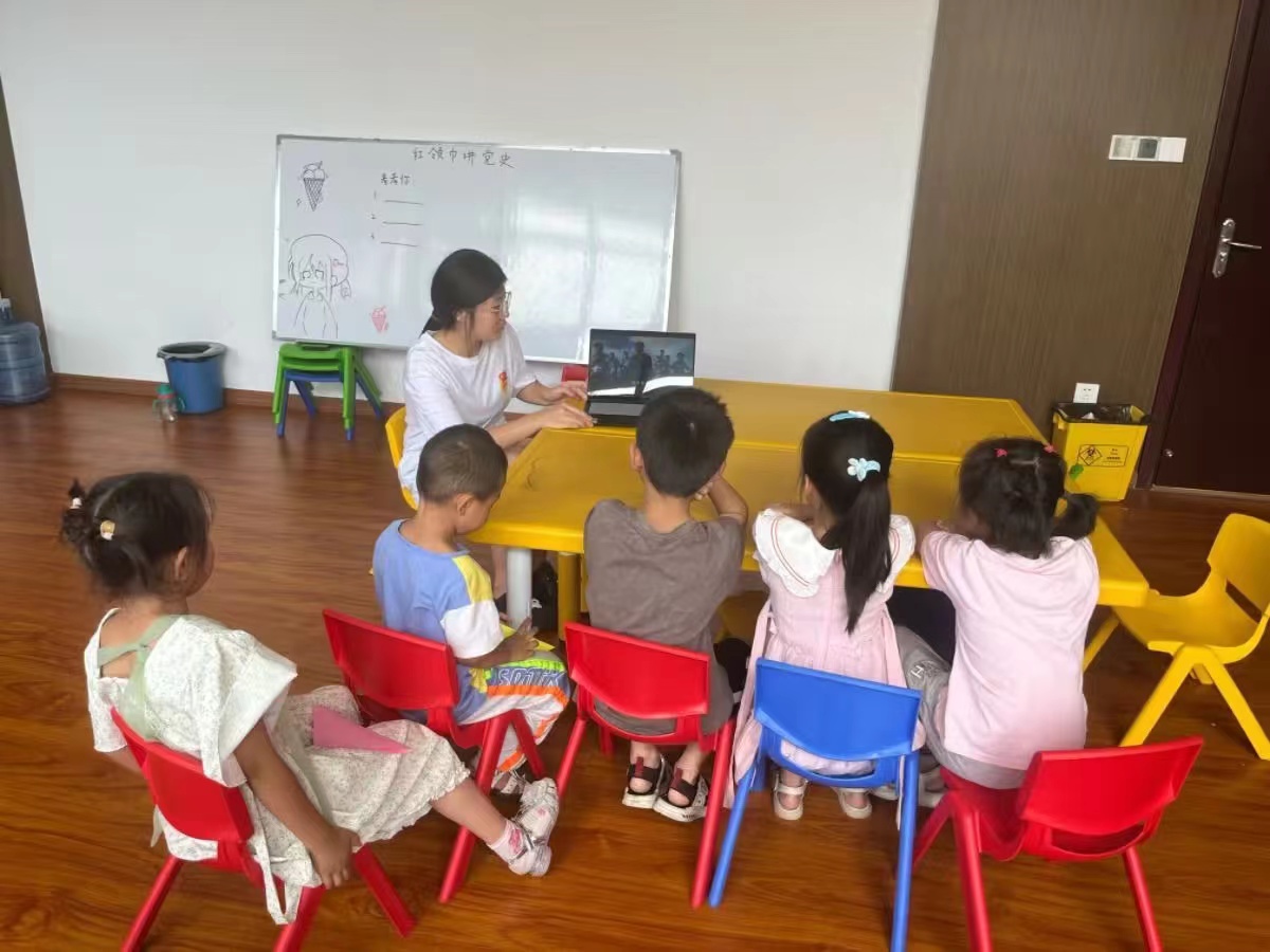 (通讯员 廖家仪)坚定理想信念,赓续革命血脉。7月15日,四叶草青年志愿服务队第五分队在监利市龚场镇浩宇本部进行暑期“三下乡”社会实践活动。为了进一步加强思想政治引领,引导动员少年坚定跟党走,今天,湖北第二师范学院四叶草青年志愿服务队第五分队志愿者带领学生学习了党史文化。