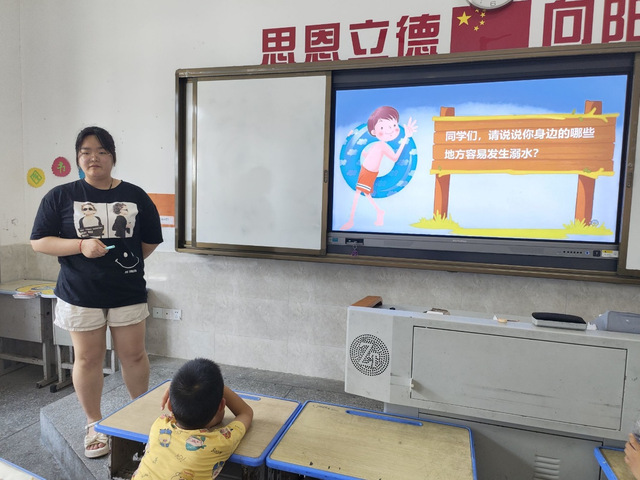 (通讯员 丁学莘)随着夏季来临,游泳、戏水等水上活动成为人们消暑的首选。然而,夏季也是溺水事故高发的季节,每年都有大量的溺水事故发生,给家庭和社会带来巨大的伤痛。为了提高学生对夏季溺水事故的认识和应对能力,四叶草青年志愿服务队第四分队队员丁学莘为学生开展了一次溺水安全知识普及活动。通过宣传教育向学生们传授关于溺水的预防和救援知识,提升学生们的安全意识。