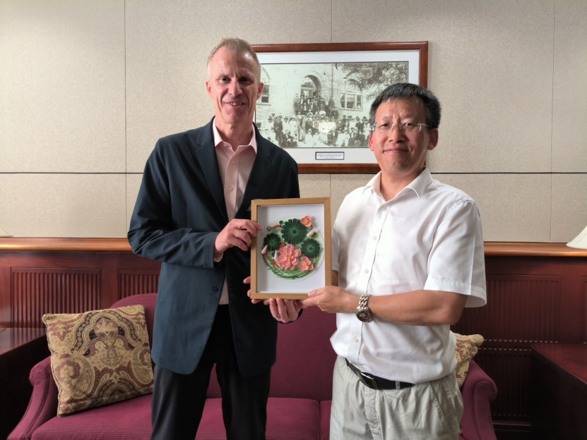 郑军表示,两校要充分利用自身独特定位,发挥优势特色,加强交流互鉴,要把学前教育中外合作办学项目做实、做深、做出典范、做出特色,并期待在双方教师交流、师资培训研修、教学方法创新、科学研究、硕士研究生培养、汉语国际推广、教师教育国际学术会议等方面开展高质量、可持续的国际合作。两校校长一致同意将两校合作从学前教育项目升级到全面的姊妹学校伙伴关系。应郑军校长邀请,八月初新到任的Rodney Hanley校长将于年底访问我校。最后,郑军向东北州立大学赠送了纪念品。