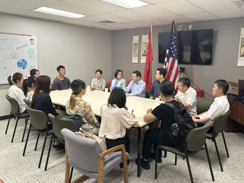 图郑军校长一行与留学东北州立大学的师生座谈交流