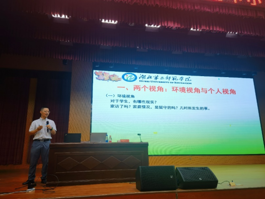 此次培训会围绕班主任工作及班主任队伍建设等内容开展专家报告、案例交流、互动研讨等活动。会中,吴贤华副院长根据实践经验,以《学生心理健康共育》为题进行专题报告,根据班主任日常教育教学经常出现的教育现象及问题,进行深入探讨,以讲案例、互动交流等多种方式教老师们如何判断心理健康与异常、如何遵循个体心理发展规律施教,向大家传授了科学的心理教育方法。