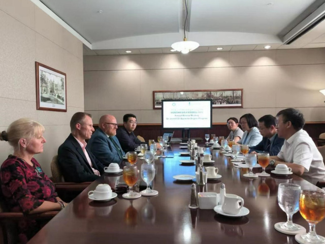 随后,代表团与美方商学院院长Janet Buzzard博士、人文学院院长Mike Chanslor教授、研究生院院长Cari Keller 教授、教育科学学院院长Vanessa Anton等开展座谈,双方就国际合作项目拓展、中外合作项目招生、教学、管理、学生成长等方面进行了研讨交流。