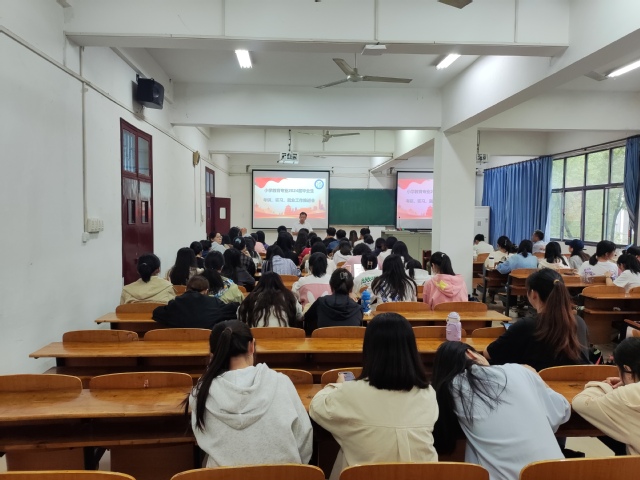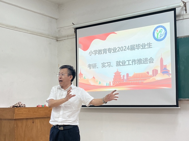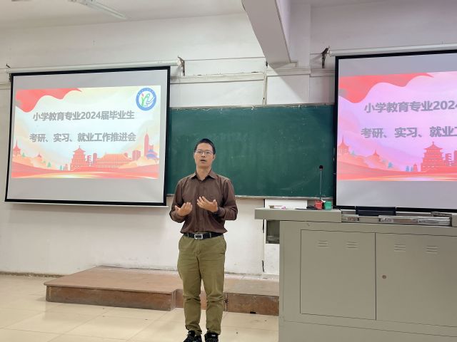 (通讯员 陈凯 袁盈盈)9月21日下午13时,教育科学学院(以下简称“教科院”)2024届小学教育专业考研、实习、就业推进会于5308顺利举行。教科院党委书记乐三明,教科院副院长吴贤华,小学教育专业负责人雷家彬教授、系主任曾婧博士、涂玉霞教授、刘师珈博士以及全体毕业生参与会议。会议由20级小学教育1班杨缘缘同学主持。