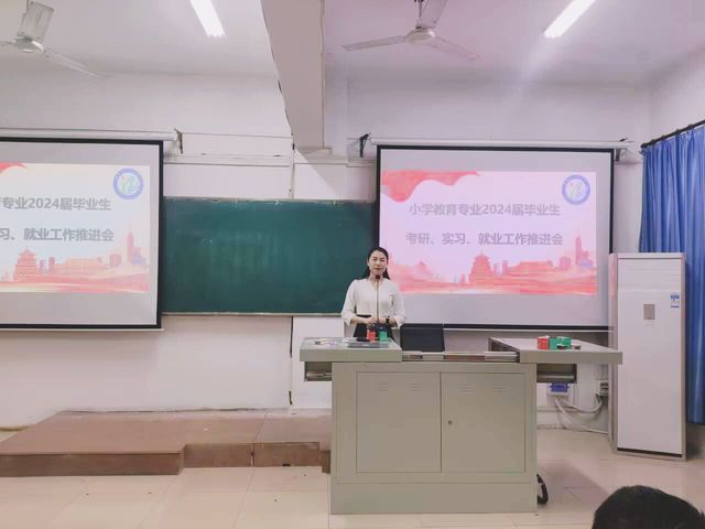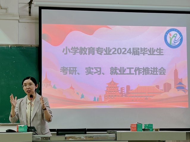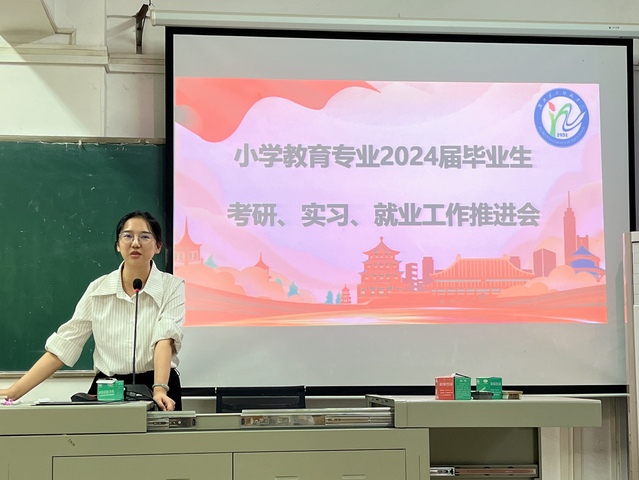 (通讯员 陈凯 袁盈盈)9月21日下午13时,教育科学学院(以下简称“教科院”)2024届小学教育专业考研、实习、就业推进会于5308顺利举行。教科院党委书记乐三明,教科院副院长吴贤华,小学教育专业负责人雷家彬教授、系主任曾婧博士、涂玉霞教授、刘师珈博士以及全体毕业生参与会议。会议由20级小学教育1班杨缘缘同学主持。