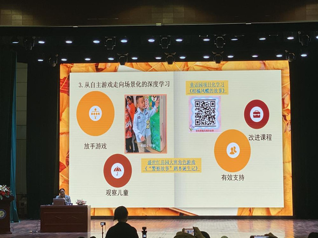 在专题分享中,武汉市江汉区教育局学前教育科特级教师骆萍、武汉市东湖高新区流芳幼儿园园长邹红霞、老河口市中心幼儿园园长寇艳芳分别以“从自主游戏走向场景化深度学习—基于问题解决的区域保教质量提升的策略研究”“自主·体验课程的探索与思考—以‘我的毕业照我做主’为例”“户外自主游戏体验课程实践经验介绍”为专题向与会人员分享优秀做法和先进经验,以期整合教育资源,形成合力与向心力,共同推进湖北省幼儿园课程建设。