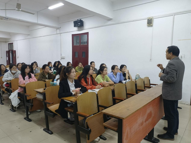 本网讯(通讯员 柴奇玉)为帮助同学们更好的明确学业发展方向,了解考研有关信息,10月19日,教育科学学院邀请湖北工业大学职业技术师范学院副院长胡茂波教授作“大学生生涯规划与发展”的专题讲座。我院小学教育专业学生聆听了讲座,雷家彬教授参加了本次活动。本次讲座由22级小学教育3班柴奇玉主持。