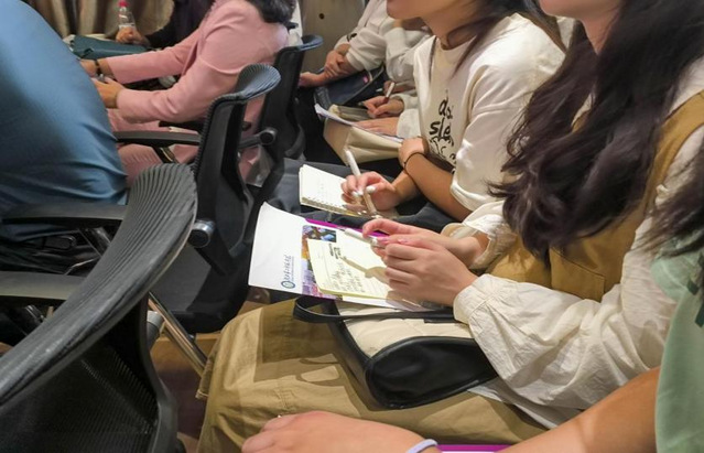 (图为2022级教育学专业语文方向学生进行会议活动记录与经验总结积累,加强自我能力发展,从优秀教师身上学习新时代教育工作者的态度与思想)