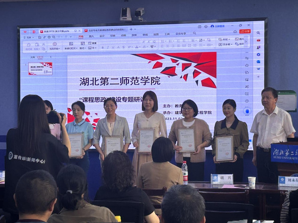 胡兴致辞并为我校课程思政示范课程团队颁发证书。他表示,我校自启动课程思政建设以来,不断深化思政课程与课程思政同向同行,深入挖掘和丰富各类课程育人内涵,着力探索课程思政建设的新模式,取得了丰硕的成果。他鼓励全体教师要不断推进课程思政建设,实现润物细无声的教育效果。