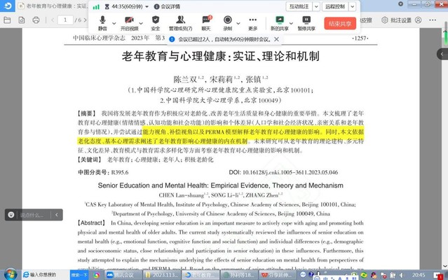 本次会议由张颖教授带领大家一起阅读《老年教育与心理健康:实证、理论和机制》和《台湾地区“在地老化”养老模式及其启示》两篇文章,在老龄化社会的大背景下,有重要研究启示。