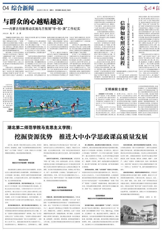 思政课是落实立德树人根本任务的关键课程,是培养社会主义建设者和接班人的重要保障。学院积极推进大中小学思政课一体化建设,将其作为新时代思政课改革创新的重大举措,以内涵式发展为目标,提升思政课教学实效,充分发挥思政课功能。