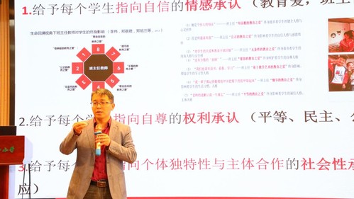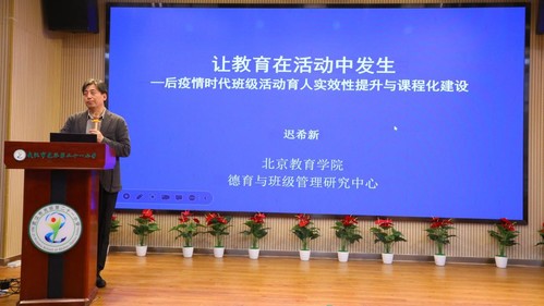 其次,迟希新教授在《让教育在活动中发展》讲座中,主张把抽象的灌输和说教变成学生亲历的活动体验。迟教授深入浅出地分析了当前德育教育面对的挑战及应对方法,明晰了教育的首要问题和根本任务,并通过典型案例引导教师如何在自己的德育活动中实践。教师要让德育活动在学生的真实生活中发生,在学生自主建构中发生。