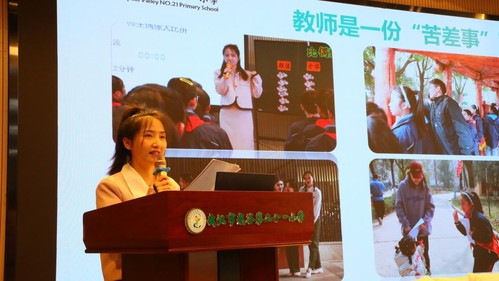 武汉市光谷二十一小学的许萌老师分享的主题是《成为光——五年的班主任蝶变》。许老师的心中有爱,眼中有爱,一手温柔,一手坚定,她的教育教学中,关注了每一个孩子,让阳光洒满每个学生的心灵。