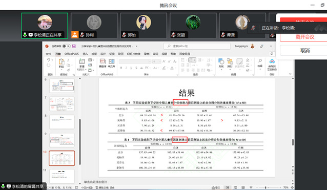 本次会议由李松清老师带领大家阅读了发表在《心理发展与教育》的2024年第4期的文章《学龄中期儿童团体创造力的发展特点及其与个体创造力的关系》。
