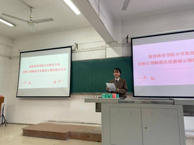 (通讯员 梅晓林、李清宇)为彰显我院小学教育优师计划专业特色,加强小学教育优师计划不同年级学生之间的交流学习,营造优良学风,12月7日下午,教育科学学院在五号楼5308教室组织小学教育专业优师计划师范生技能展示暨经验交流活动。教育科学学院副院长吴贤华、2021级、2022级小学教育优师计划班导师刘晶晶、涂玉霞以及辅导员老师出席本次活动,小学教育专业优师计划全体学生参加,活动由2022级小学教育1班杨英琦主持。