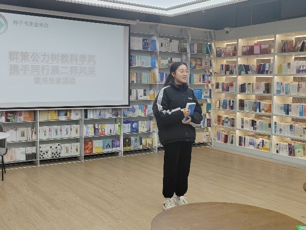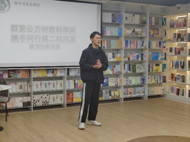 为丰富校园文化生活,引导学生养成爱读书、读好书、善读书的习惯,12月3日晚,种子书友会在倍阅书店开展“群策共力树教科学风,携手同行展二师风采”之“经典精读”读书分享活动。教育科学学院教师李菁,学院分团委学生副书记顾雨菲、种子书友会干部以及来自各个学院各年级报名此次读书分享活动的同学参加了本次活动。