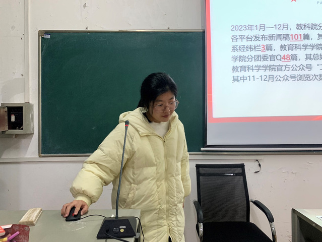 (通讯员熊妍)12月12日17时25分,教育科学学院(以下简称“教科院”)分团委对标定级自评会议顺利召开。教科院分团委副书记唐志强,分团委全体成员参与本次会议。23级学前教育1班祁怡雯担任主持人。