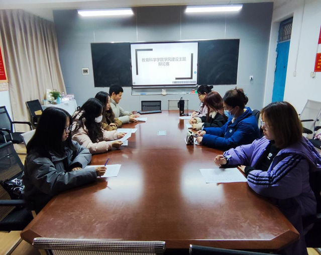 (通讯员 伍弯弯)12月7日,教育科学学院(以下简称“教科院”)分团委与辩论队于教科院学生会办公室开展以“树学习新风,从你我做起”为主题的辩论赛活动。辩论队参赛选手及评委共同参与此次活动。