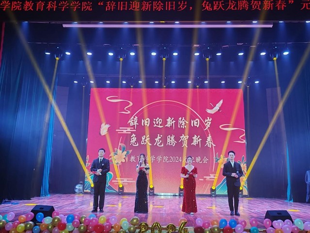 (通讯员 刘晨 程婷)为迎接元旦,增加节日气氛,促进学院的精神文明建设,进一步展现学院师生风采魅力。12月15日18时,教育科学学院(以下简称“教科院”)“辞旧迎新除旧岁,兔跃龙腾贺新春”元旦晚会于我校大礼堂举行。