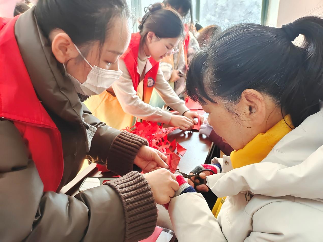 本次活动分为两个课堂进行,一个是手工课,包含“年味剪纸”、“趣味手工”、书法。手工课上志愿者们仔细与老年人进行沟通,及时给予帮助,在志愿者和老人的配合之下,一件件饱含年味与祝福之意的作品诞生。另一个是养生课堂,包括养生科普、八段锦与健身操。养生课上,老年人们认真倾听志愿者的健康知识科普,并和身边的同伴进行讨论交流。随后,志愿者们带领老人们跳八段锦与健身操,通过每个动作活动身体。