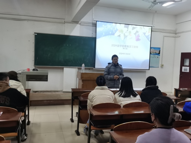 (通讯员 刘晨)为增强学生的实践能力和专业素养,提高学生积极性,引导学生更好地完成见习活动。1月2日13时,教育科学学院(以下简称“教科院”)学前教育专业于5206开展幼儿园实习动员大会。教科院副院长吴贤华,学前教育专业系主任朱会从,指导老师孙悦含,辅导员唐志强及学前教育专业教师及实习生参加本次大会。