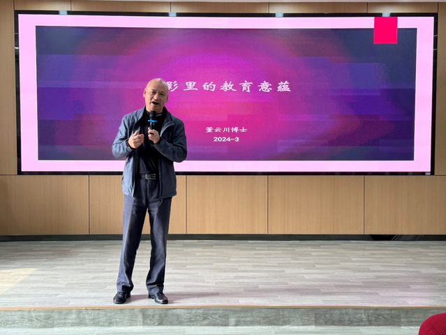 讲座伊始,董云川教授提出疑问:“教育何为?生命何为?”他指出电影与教育有异曲同工之处,电影是有效的教育手段,并肯定影像具有重要的教育价值。他以电影案例《老人与枪》为切入点,阐明做教育不是为了生活,教育本身就是生活的哲理。接着,他分别从一种活法、人分两种、第三种选择、复杂的人性、道德的真实、悲剧还是喜剧、童贞与纯善七个角度分享电影,推荐学生们去观看和欣赏。在电影中看到人生百态,感叹生命的多元性,思考教育哲理。紧接着,董教授推荐了教育题材的电影,如《小鞋子》《黑板》等,希望通过电影寓教于无形之中,滋养人的心灵,领悟教育的真谛。