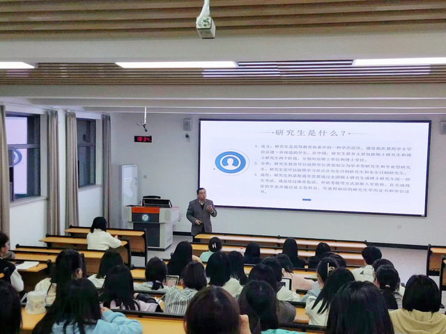 在讲座中,胡茂波老师从考研重要性、备考策略、面试准备、就业前景等多方面介绍到考研是如今时代所趋,“考研可以为未来职业发展奠定基础,又增强了我们自身的个人自信和自我认可,为我们的人生规划、目标实现、全面发展、自我成就起着至关重要的作用。”胡茂波老师不仅为与会学生打上一剂考研成功的“强心剂”,更提出详细的考研准备计划。