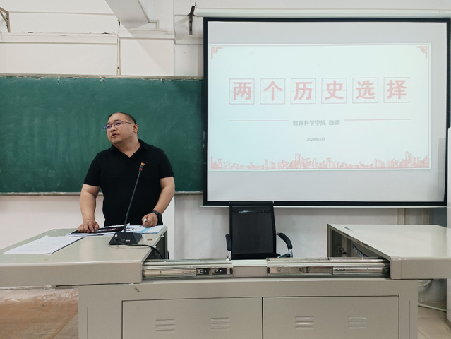 (通讯员 唐蕊)4月25日17:40,教育科学学院(以下简称“教科院”)分党委副书记魏豪于5308教室为分党校第295期入党积极分子培训班学员讲授党课。全体培训班学员参加。