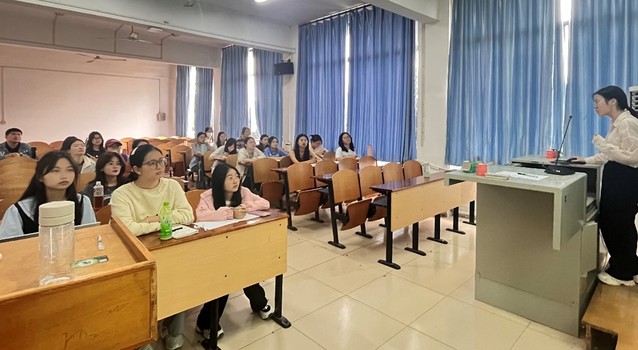 紧接着,丁婵宇为同学们讲解了文献综述的写作方法和技巧。她强调,在选择主题时应遵循兴趣、可行性和创新性原则,在进行文献搜索时应注意检索词的选择和检索工具的使用,在展开论证时应注意文献的分类和综合,在进行文献研究时应注意文献的阅读和分析,在进行文献批评时应注意尊重和客观,在撰写综述时应注意语言表达和排版格式等,并给同学们展示了相关学术论文范例。