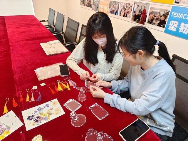 “寄语传情,智达争锋”活动具有三种形式,分别为:樱语传情、智达争锋、樱花DIY。活动期间,同学们以书写便签的形式表达祝福与期待,通过知识大比拼,用智慧获得丰厚的礼品并在专业手工制作指导人员的帮助下,制作干花书签,留住春天的美好。