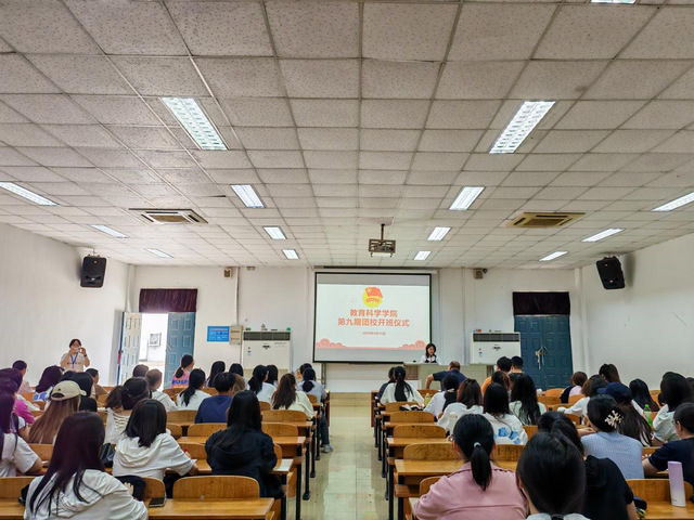 (通讯员 唐蕊)5月15日12时10分,教育科学学院(以下简称“教科院”)于旧报告厅4举行第九期团校开班仪式。教科院分党委书记乐三明、副书记魏豪、分团委副书记唐志强、辅导员关畅老师及第九期全体团校成员参与本次活动,23级学前教育1班李雪薇主持会议。
