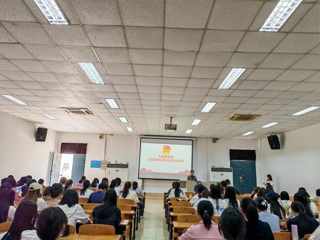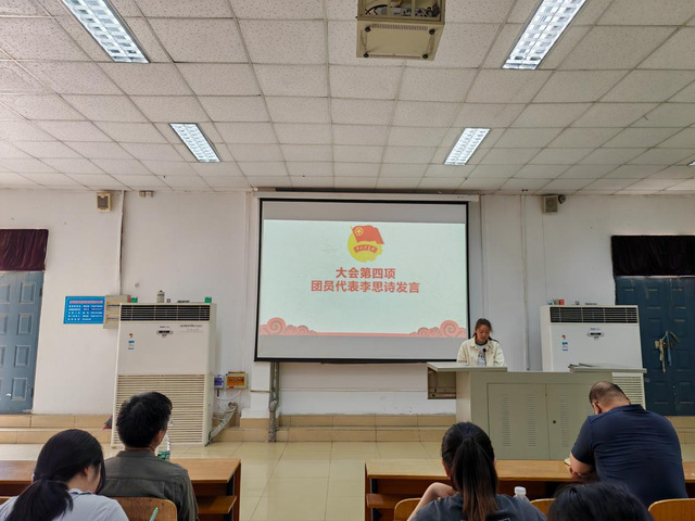 会议伊始,全体起立,合唱《中国共产主义青年团团歌》,接着,分团委组织部部长李沐风介绍本次团课情况及团校的规章制度,包括团校的纪律、考核评定等内容。随后团员代表23级学前教育1班李思诗发言,她说到:“勇于担当不仅是个人努力的体现,更是对团体之忠诚的表现,敢于创新,是优秀团员的精神,而想成为一名优秀的团员还需要不断的进行自我反思。”