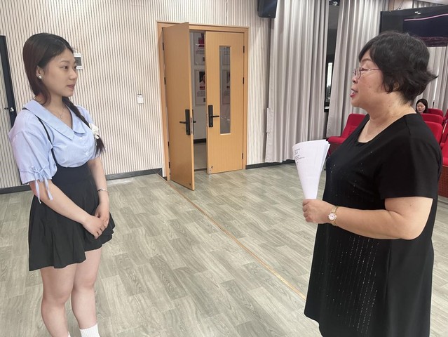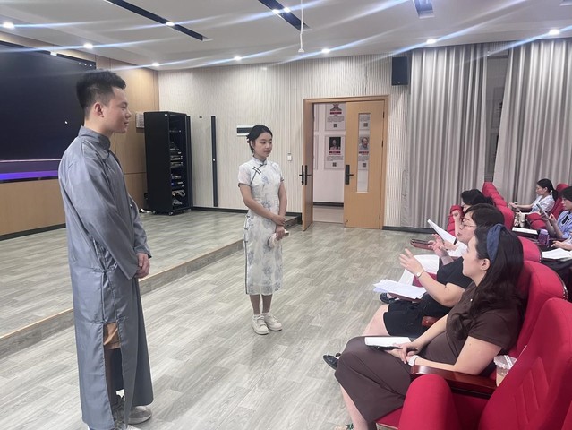 活动伊始,黄楠楠学姐向大家介绍了本次培训到场的专家和老师。随后,各参赛选手依次向专家展示自主练习的成果,杜宇虹老师首先和选手们探讨了经典作品的内涵,帮助选手们更好地把握作品。随后对选手的作品逐一进行指导,在诗歌朗诵技巧、舞台表现力、情感表达等方面提出了宝贵的建议,鼓励选手们吃透作品,用丰富的肢体语言和具有艺术感染力的声音打动观众,让观众能够更加深入地理解和感受经典诵读的魅力。