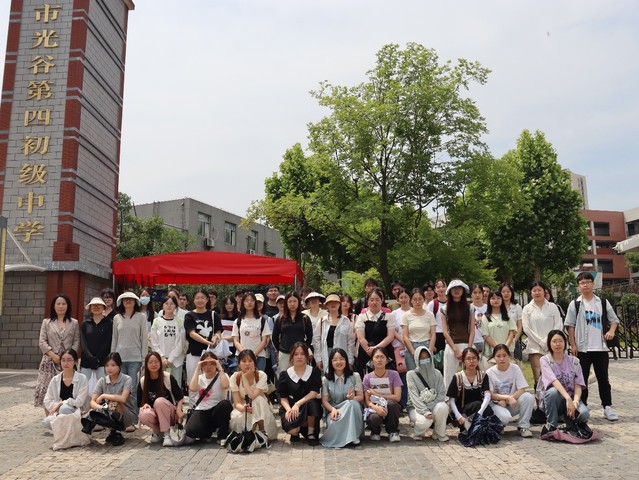 (图为2022级教育学专业学生在四初门口合影,准备开展教学见习的场景)