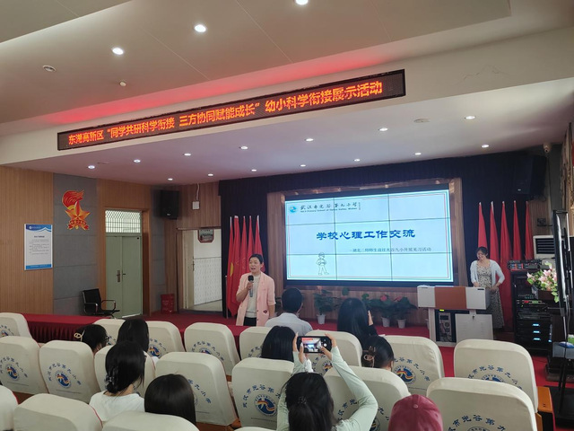 见习活动开始,由光谷九小心理健康老师黄巧带领同学们前往报告厅就坐。首先,由光谷九小副校长张茜介绍学校概况并对湖北第二师范学院应用心理学专业学生的到来表示欢迎。