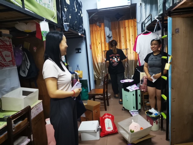 为全面了解学生新学期的思想动态,加强寝室安全文明建设。教育科学学院于2024年9月1日下午15:00开展新学期寝室走访活动。辅导员、专业老师及班导师参加本次活动。