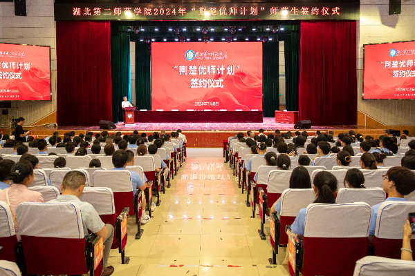 本网讯(通讯员 张震)7月8日上午,我校2024年“荆楚优师计划”师范生签约仪式在大礼堂举行。相关地区教育局领导,我校校长郑军、副校长陈勇出席仪式,我校相关职能部门、教学学院负责人,辅导员、“荆楚优师计划”师范生及亲友参加仪式,招生就业处处长刘儒国主持仪式。