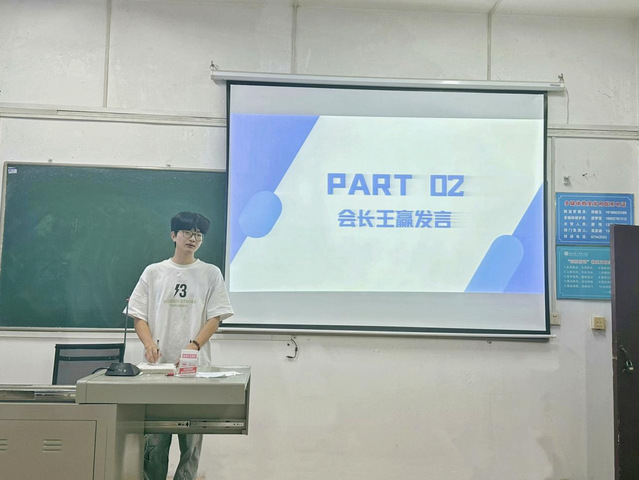 紧接着,会长王赢登台发言。他向组织成员们强调,在工作要认真严谨,确保各部门有序运转,成员间相互配合、团结互助。同时,他还倡导各部门多交流沟通,营造良好组织氛围,便于工作顺利开展。