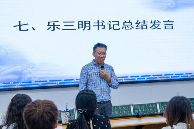 活动尾声,乐三明书记对本次活动进行总结发言。乐书记首先对同学们积极昂扬的精神态度给予赞扬;其次,对教育学专业此次活动的内涵深度、对教育学专业导师见面会师生互动中的真情温度表示肯定;最后,乐书记呼吁同学们学习教育家精神、做新时代新教师。