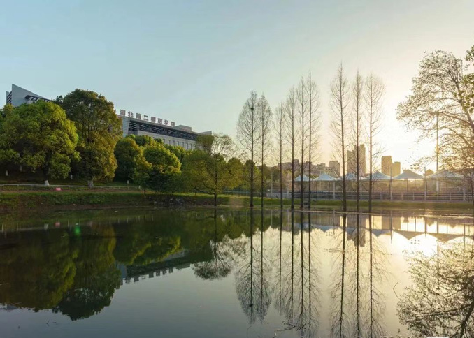 除了建筑之美,湖北第二师范学院的自然景观也同样令人陶醉。三鉴池是校园内的一处著名景点,池水清澈见底,波光粼粼,四周绿树环绕,鸟语花香。每当夕阳西下时,余晖洒在水面上,金光闪闪,美不胜收。