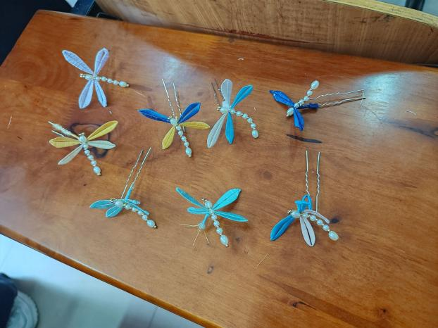 终于一只又一只的小蜻蜓,从同学们的手中飞了出来。镜头下,一件件以人造胚架和铜丝做骨、用彩色桑蚕丝线缠绕出来的作品自然而灵魂,纯手工制作的缠花更有一丝一线缠绕的温度,他们捧着英山缠花蜻蜓爱不释手,发出了由衷的感慨:“缠花真是一项有魅力的非遗,以后我也可以在空闲时做缠花,让传统非遗与现代时尚碰撞出艺术的火花。”